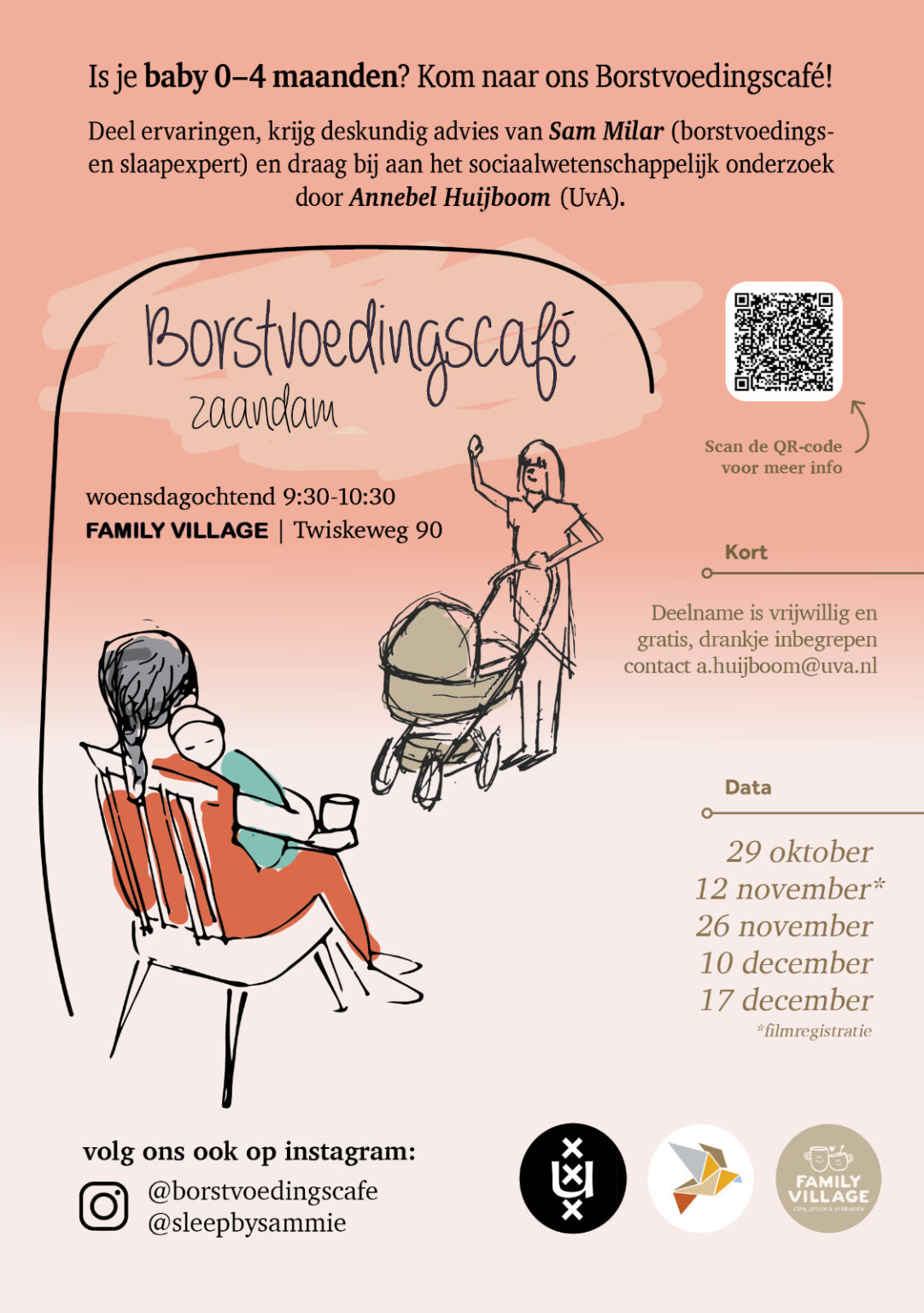 Het Borstvoedingscafé wordt georganiseerd door Annebel Huijboom, antropoloog en promovendus, in samenwerking met Sam Milar, verpleegkundige, perinataal begeleider en borstvoedings- en slaapexpert. Samen creëren zij een laagdrempelige, warme omgeving waar ouders ervaringen kunnen uitwisselen, vragen kunnen stellen en steun vinden bij andere moeders.