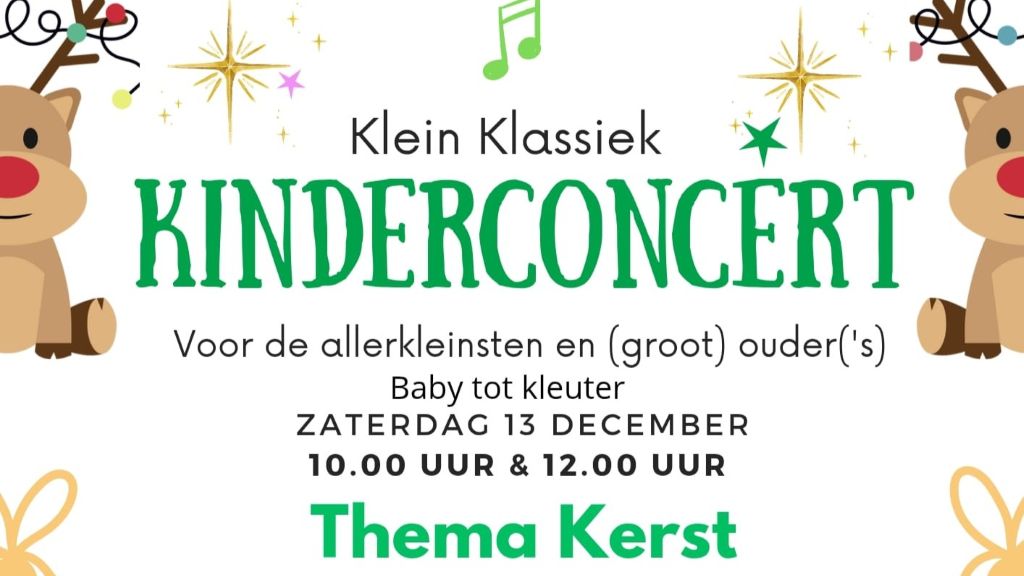 Klein Klassiek geeft een baby en peuterconcert met het thema ‘kerst’ bij Muziekvereniging ZFC in Zaandijk. De musici deze middag zijn Njola Ritzen, Maartje Peek en Diane Johnston. Het concert wordt om 10.00 uur en 12.00 uur gegeven. Voor kinderen bedraagt de toegang € 5,00 en voor volwassenen € 10,00.