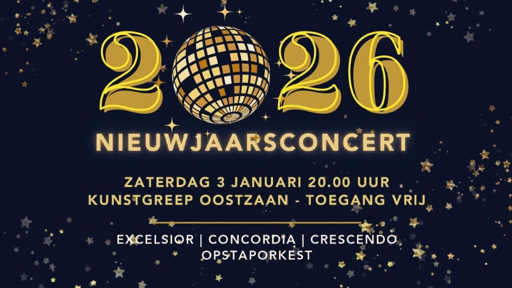 Op zaterdagavond 3 januari geven de Oostzaanse muziekverenigingen het jaarlijkse Nieuwjaarsconcert in de Kunstgreep. Ga onder het genot van een drankje luisteren naar de cultuur van het mooie dorp en praat bij met alle bekenden uit het dorp. Het concert wordt gegeven door het Opstaporkest Oostzaan en de muziekverenigingen Crescendo, Excelsior en Concordia.