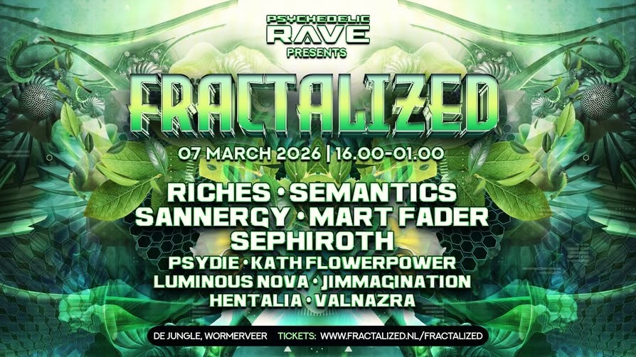 De lente komt eraan en Psychedelic Raves keert terug naar De Jungle in Wormerveer voor een nieuwe editie van Fractalized. Het wordt weer een reis in deze magische speeltuin voor volwassenen. In de line-up staan o.a. Riches, Semantics, Kath Flowerpower en Valnazra.