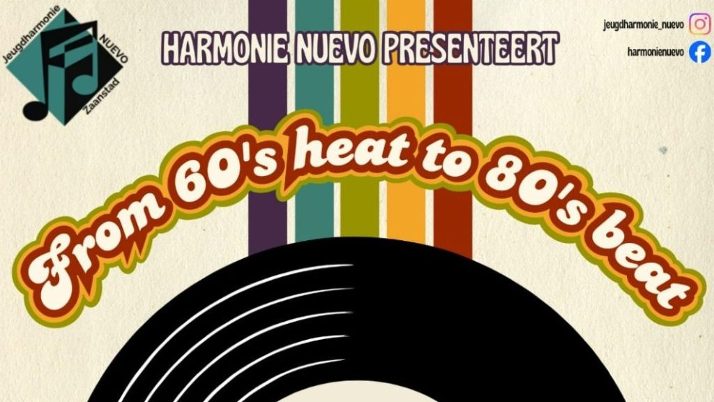 Jeugdharmonie NUEVO geeft in de Stoomhaal in Wormer een concert met als thema ‘From 60’s Heat to 80’s Beat’. Een selectie van de beste muziek uit de jaren ’60, ’70 en ’80 komt voorbij, van Doe Maar tot Elvis en van Stevie Wonder tot de Bee Gee’s. Ga samen met jeugdharmonie NUEVO oude herinneringen terughalen en heerlijk swingen op iconische muziek.