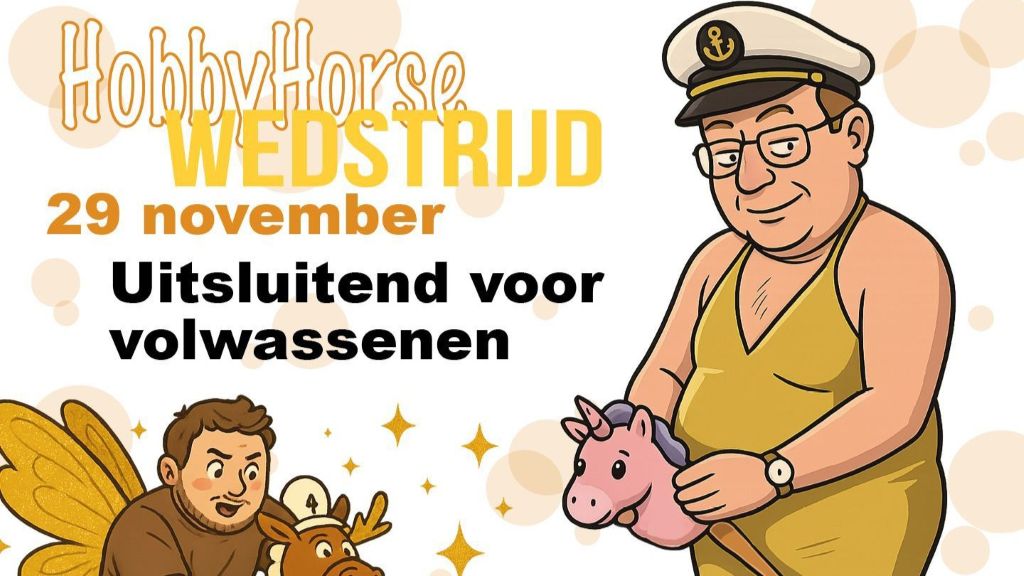Heb jij altijd al op je hobbyhorse willen stappen en er vandoor willen galopperen? Dan is nu je kans! Om 13.00 uur wordt er gestart met een gezellige dressuurproef. Daarna is het tijd voor actie: springen met een hobbyhorse tussen je benen, natuurlijk onder het genot van een lekker drankje. Geef jezelf op, je vrienden, je opa, oma of je moeder en ga naar de hobbyhorse middag in Wijdewormer…. speciaal voor de grote mensen! Het thema is vandaag ‘Fout & goud’.