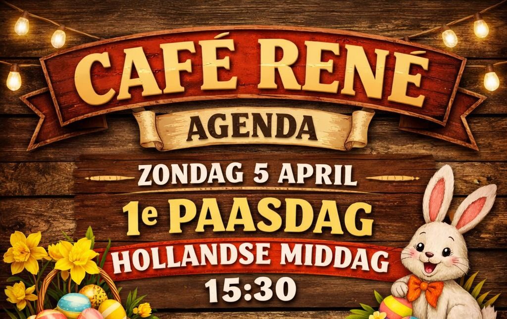 Bij Café René is er een gezellige Hollandse middag in Paassfeer met muziek en feestelijke aankleding. Bezoekers kunnen genieten van een ontspannen en vrolijke middag met typisch Nederlandse gezelligheid.