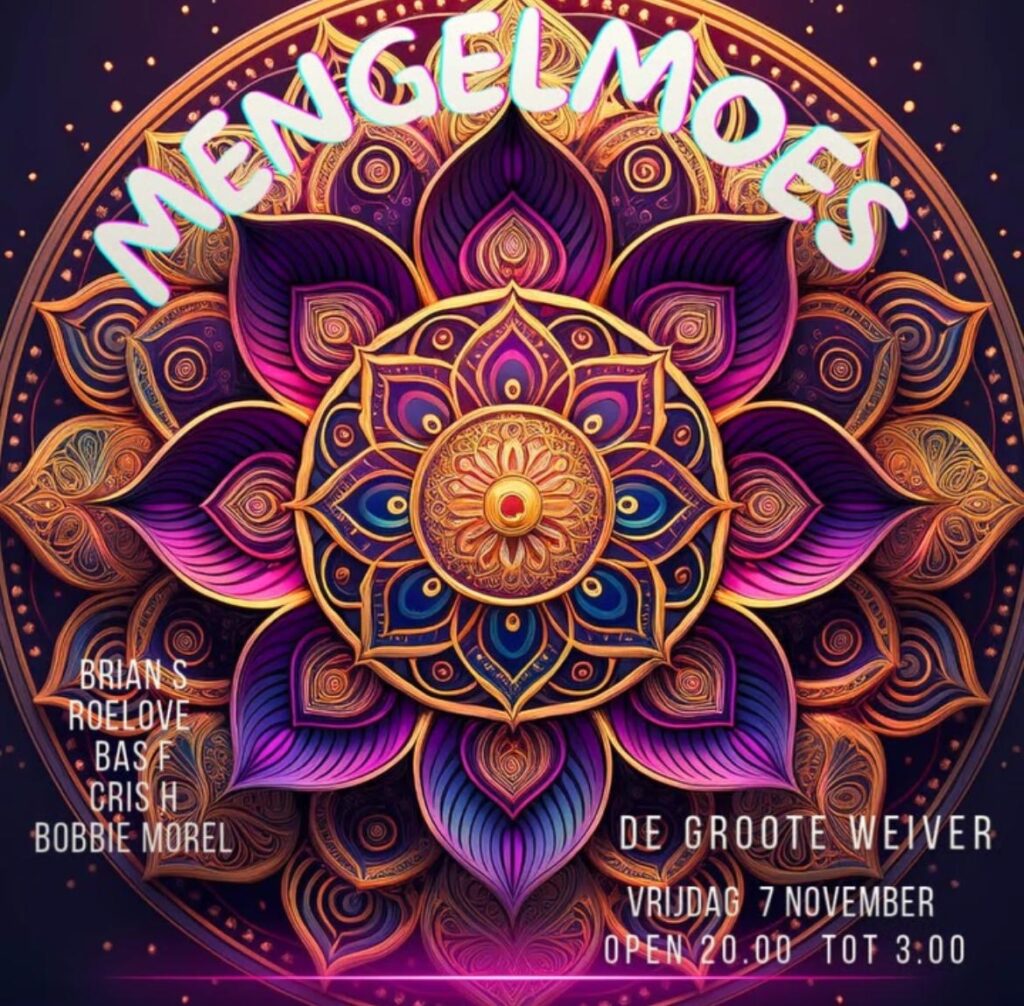 Mengelmoes keert terug met een sfeervol feest vol muziek, dans en gezelligheid. Top-dj’s zoals Cris H, Brian S, Roelove, Bas F en Bobbie Morel zorgen voor de perfecte mix van muziek. Een avond om samen te dansen en genieten bij het kampvuur van de Groote Weiver.