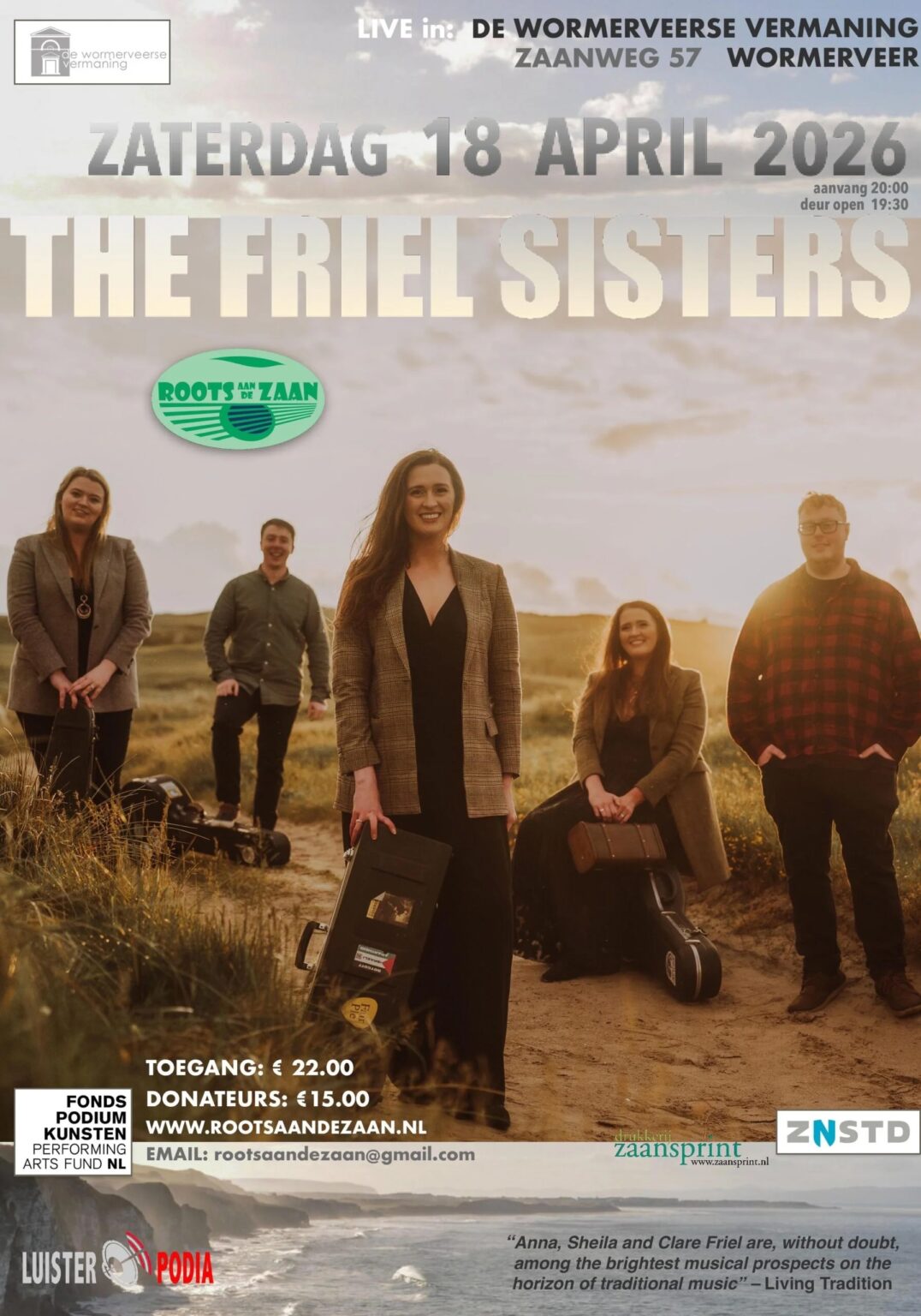 The Friel Sisters hebben al wereldwijd opgetreden, waaronder alweer bijna tien jaar geleden bij Roots aan de Zaan. Ze deden gastoptredens met acts als The Chieftains, Cherish the Ladies, Solas en Fidil. Hun titelloze debuutalbum stamt uit 2013; hun derde plaat Northern Sky kwam eind 2024 uit. De drie zussen worden bijgestaan door gitarist Marty Barry en multi-instrumentalist Cathal Ó Curráin.