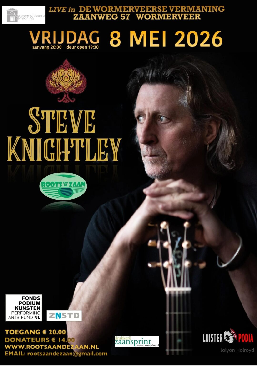 Al heel lang stond het iconische duo Show Of Hands, bestaande uit Steve Knightley en Phil Beer, hoog op onze verlanglijst. Peter Gabriel noemde Show Of Hands “one of the great English bands”. Ooit, in 2005, bij het embryonische Roots aan de Zaan toen wij nog in Grolloo woonden, hebben we hen op het podium gehad. Echter, daarna – eenmaal terug in de Zaanstreek – is het wel gepoogd, maar kwam het er niet meer van. Inmiddels bestaat Show Of Hands (o.a. ook bekend van zes in folk-kringen legendarische optredens in de zelf afgehuurde Royal Albert Hall!) niet meer, en gingen Steve en Phil ieder hun eigen weg. En die weg brengt Steve Knightley dan eindelijk ook naar Roots aan de Zaan, maar nu als solist.